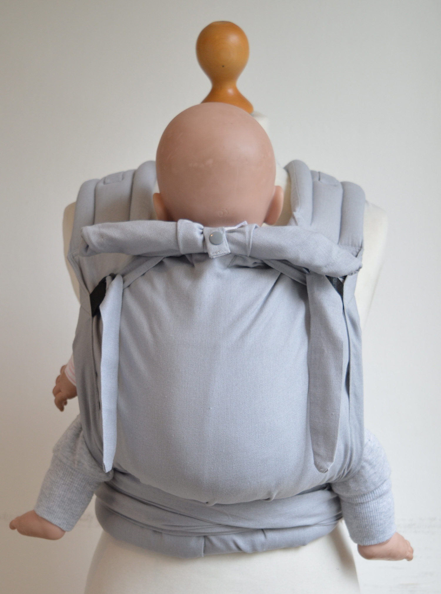- Ergonómico — mantém a posição natural em “M” e a curvatura em “J” da coluna do bebé;