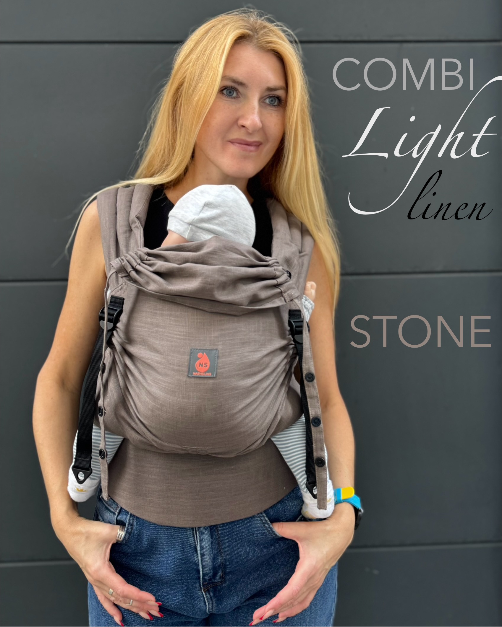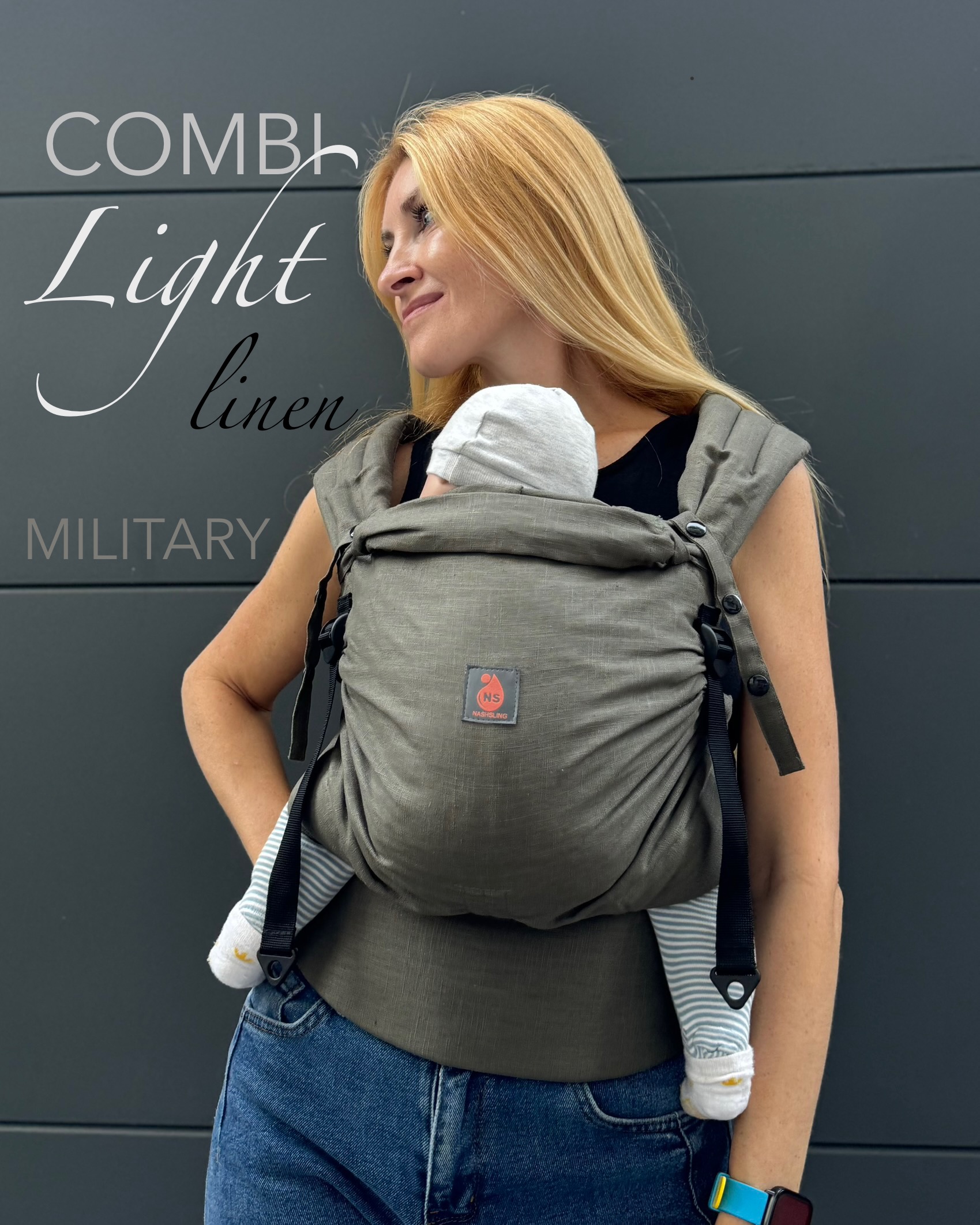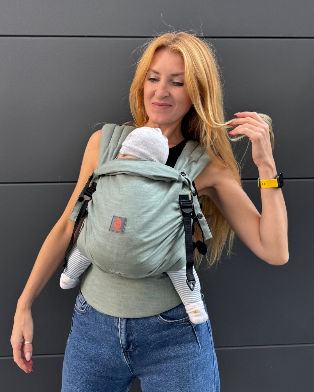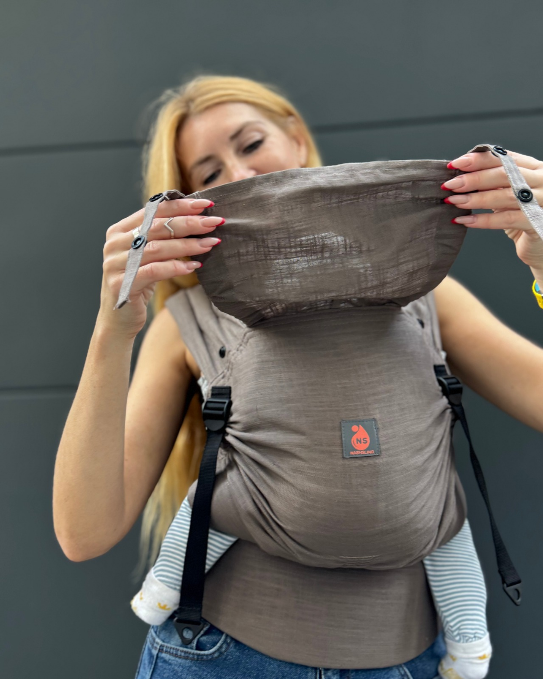 Mochila ergonómica ajustável para bebés de 4–16 kg, confortável e segura, feita com tecido de linho respirável. Ideal para várias posições: frontal, nas costas ou na anca.