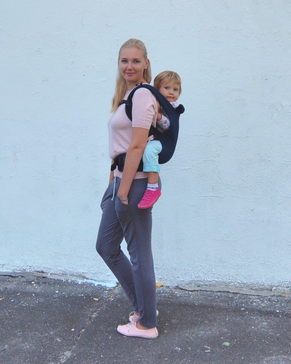 Após os 6 meses, é possível transportar o bebé também nas costas.