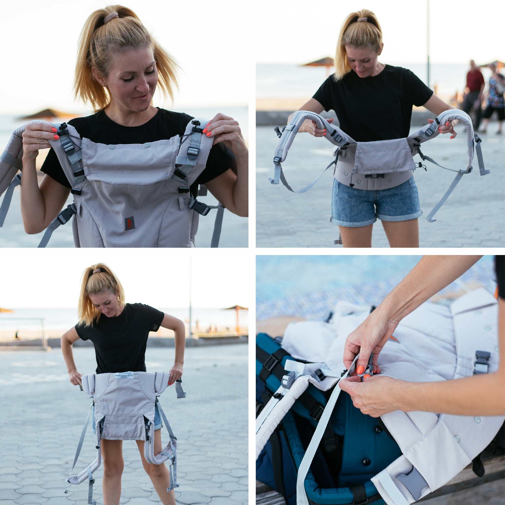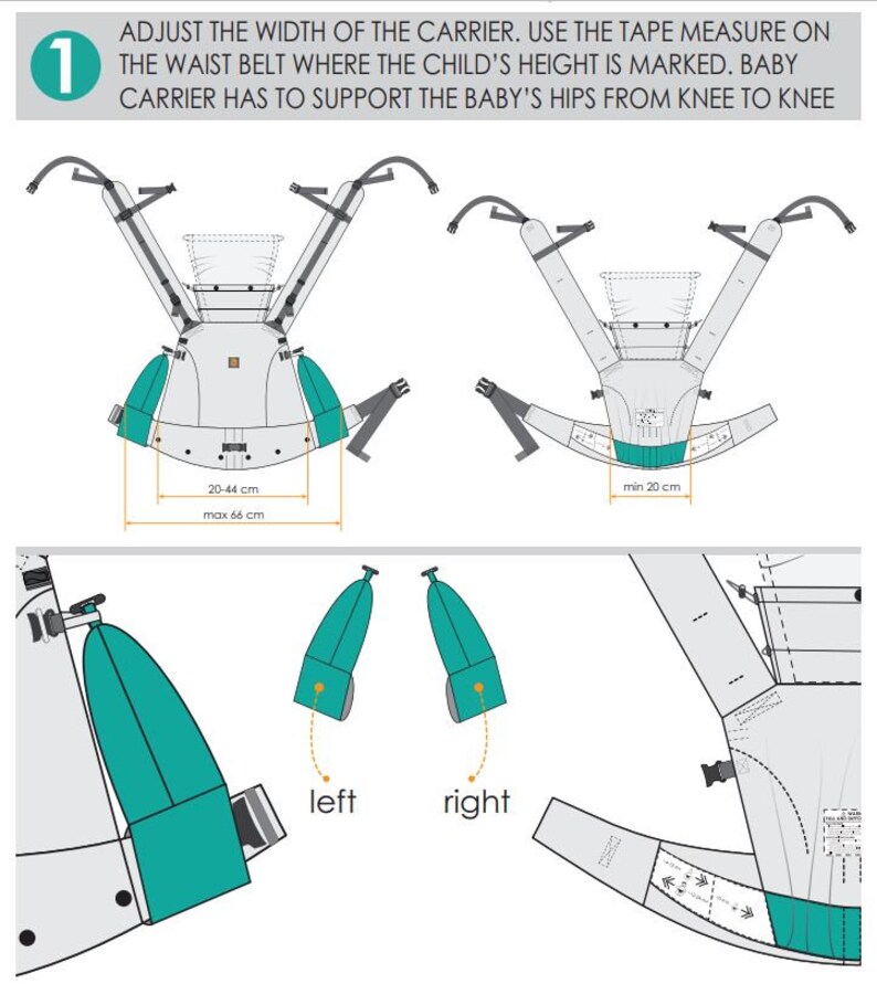- 3 posições de transporte: frontal, na anca ou nas costas.