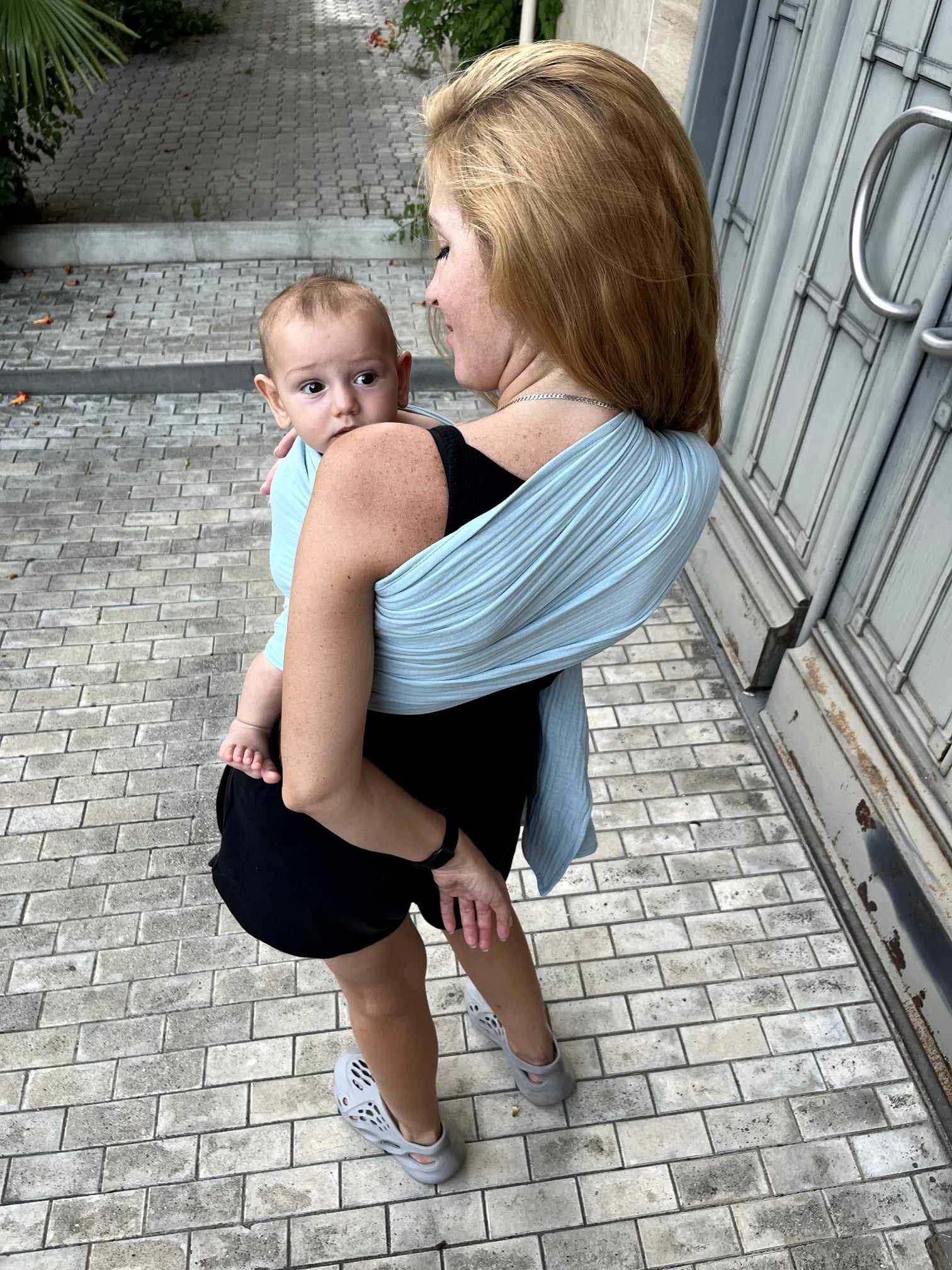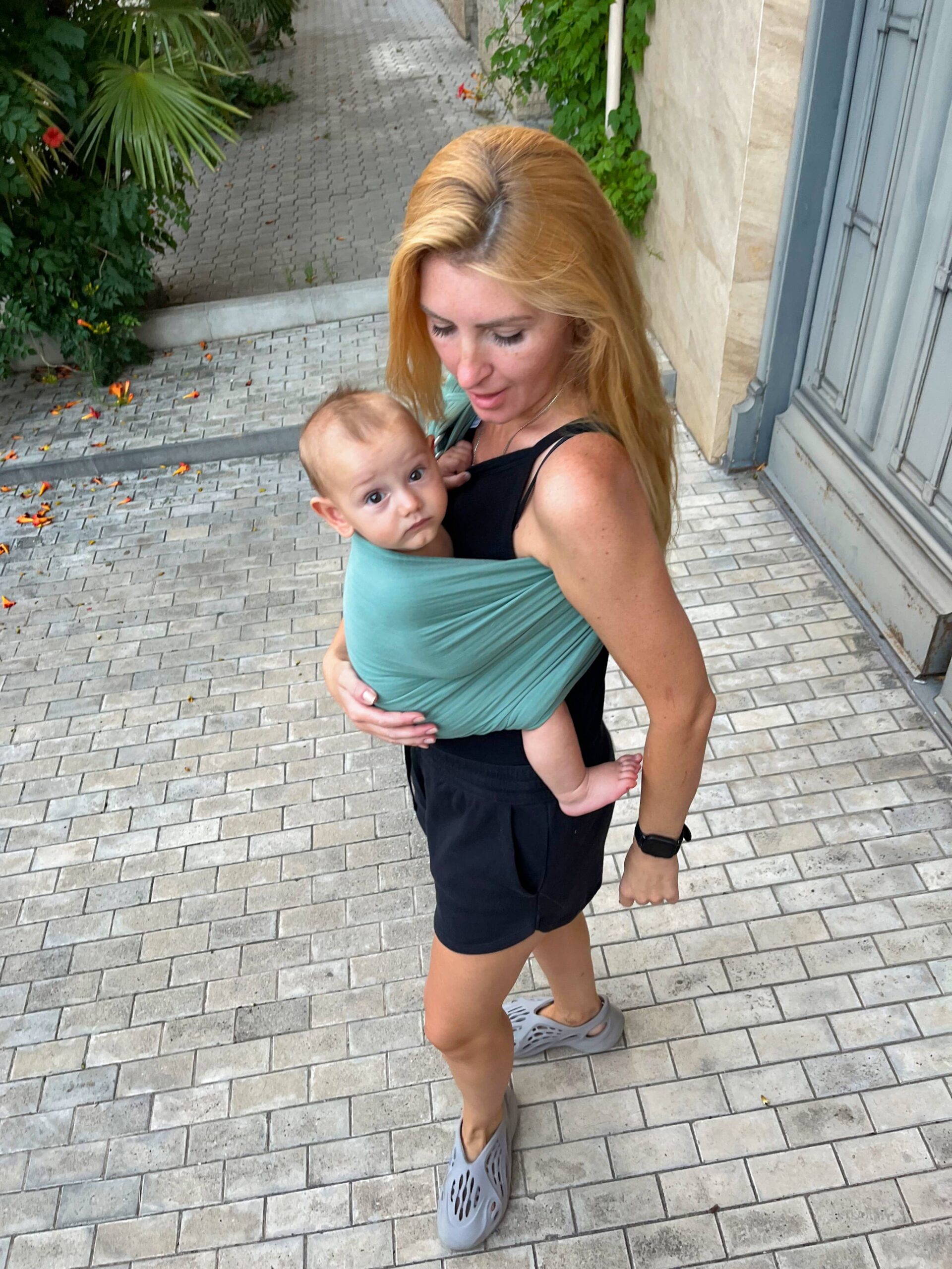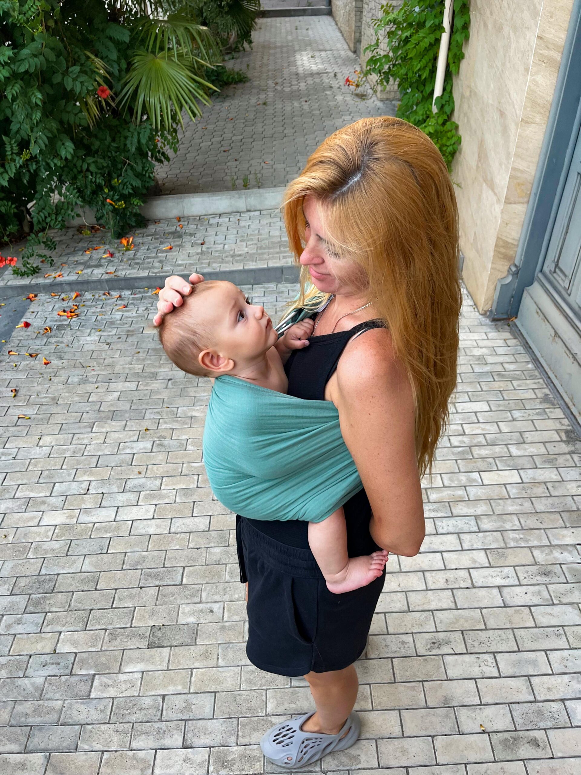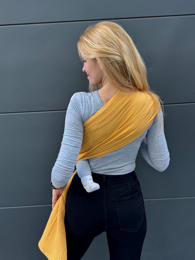 O Sling de Argolas Nashsling em musselina 100% algodão é leve, respirável e muito suave — perfeito para os dias quentes e para colos rápidos e confortáveis.